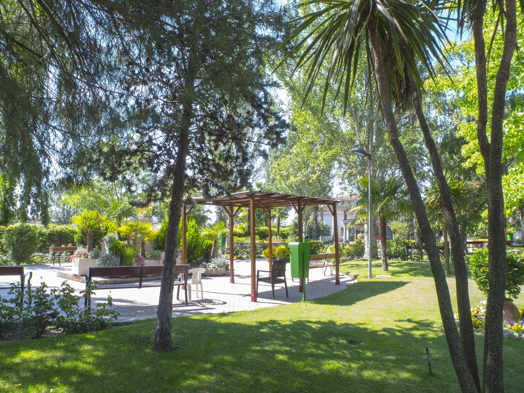 Cuenta con amplias zonas ajardinadas y zonas comunes interiores llenas de luz, con una gran cúpula que hace que los días grises del triste invierno se conviertan en plácidos momentos de paz y de relax difícil de encontrar en la gran ciudad